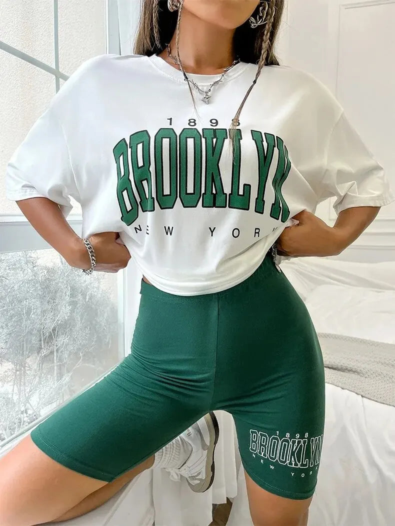 Casual Loose T-shirt Tight Shorts Pajama Set