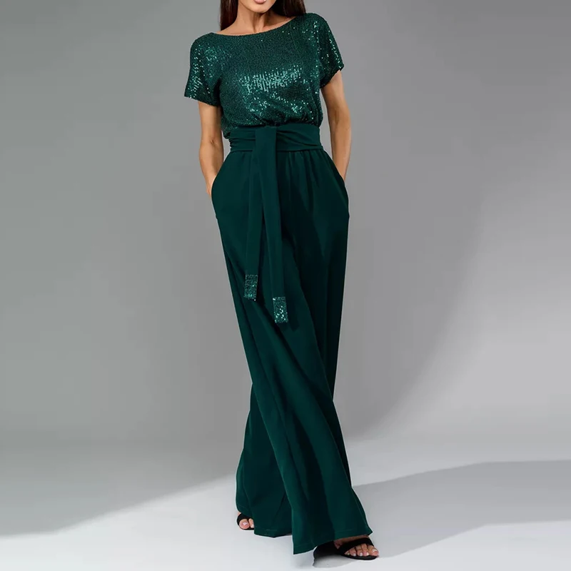 Sequin Patchwork Commuting Jumpsuit