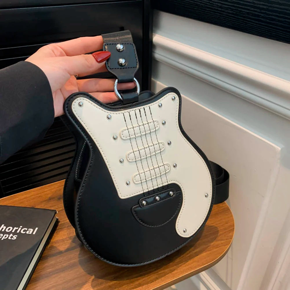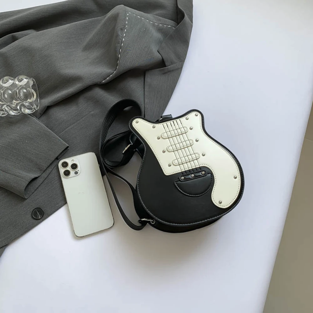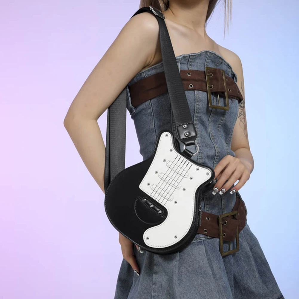 Guitar Shaped Fashion Shoulder Bag Large Capacity PU Novelty Crossbody Bag Adjustable Strap Creative Hobo Purse for Women Girls