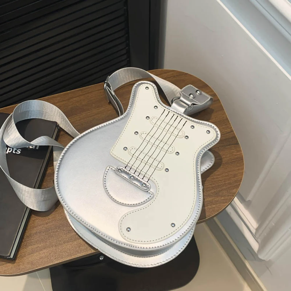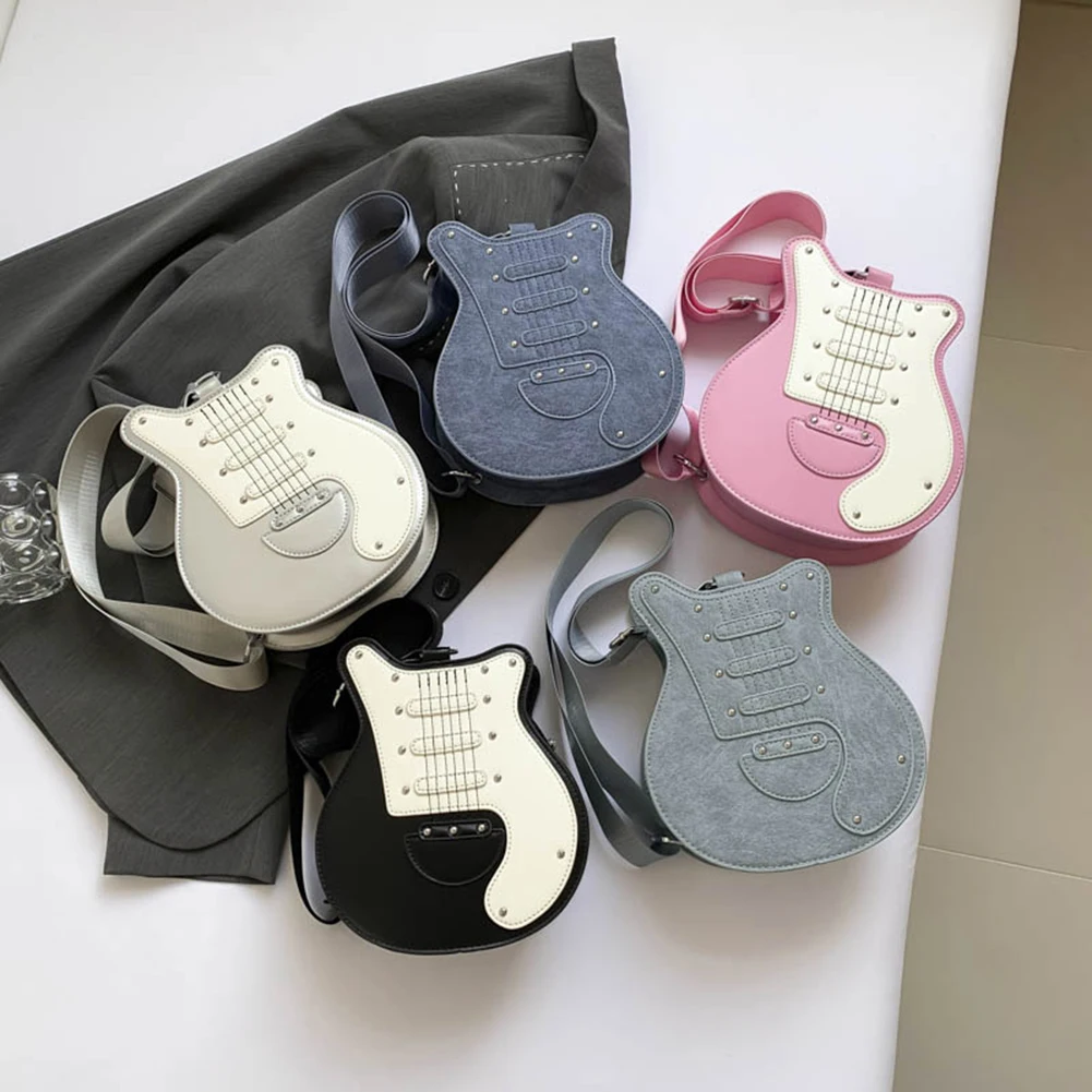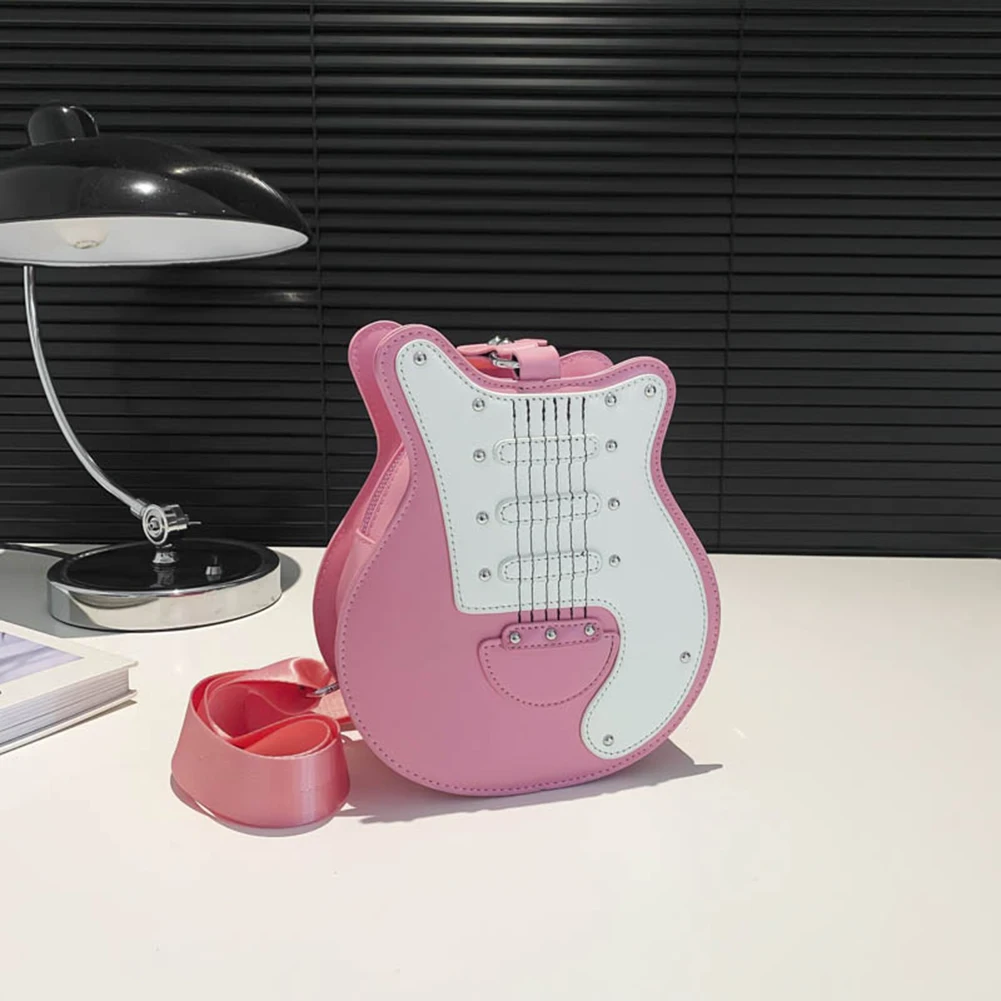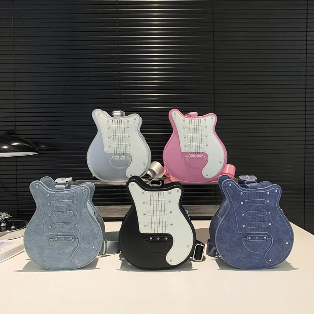 Guitar Shaped Fashion Shoulder Bag Large Capacity PU Novelty Crossbody Bag Adjustable Strap Creative Hobo Purse for Women Girls