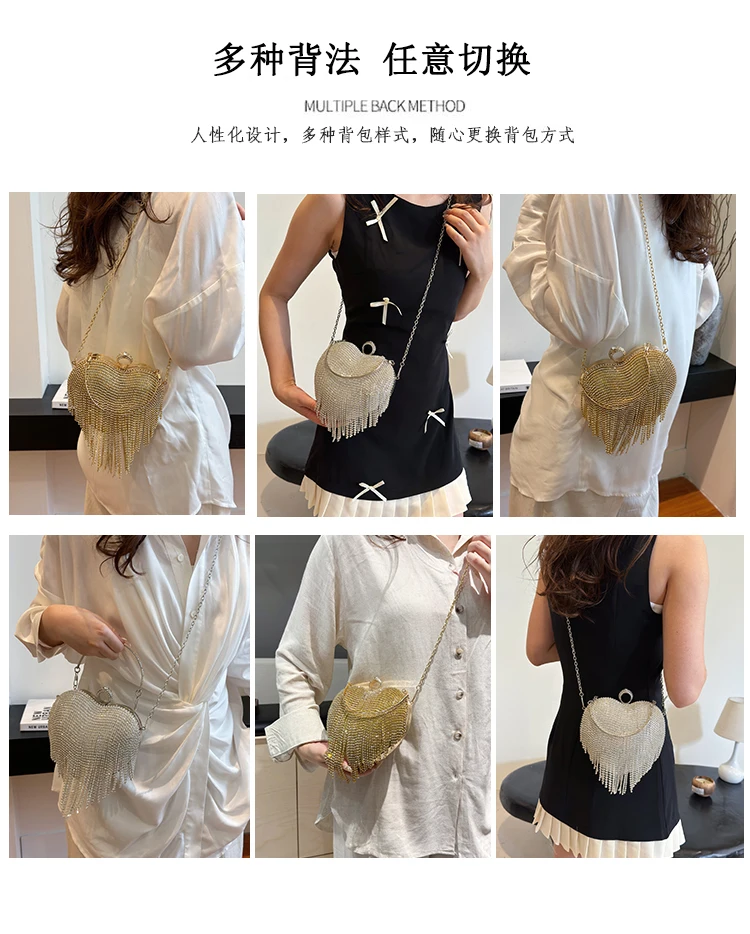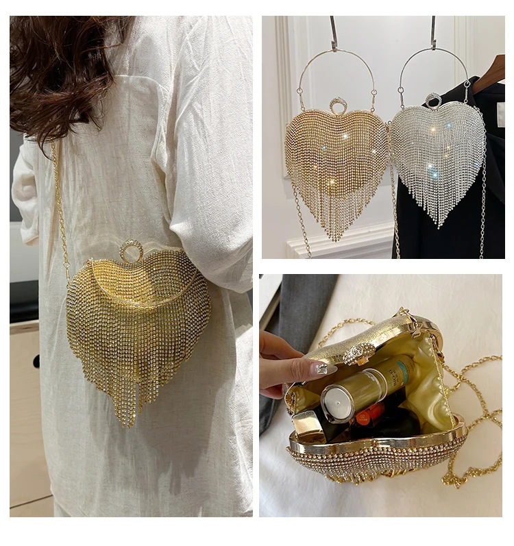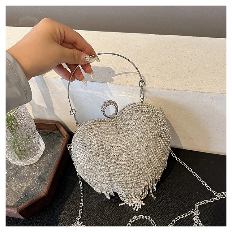 Partywear Handmade Diamond Heart Handbag