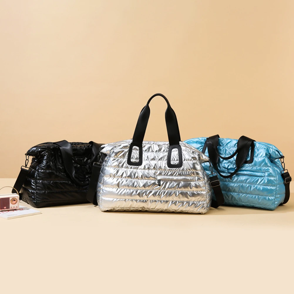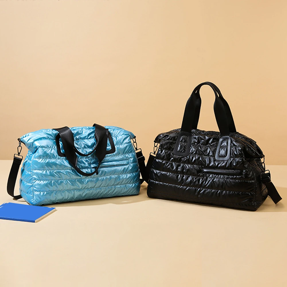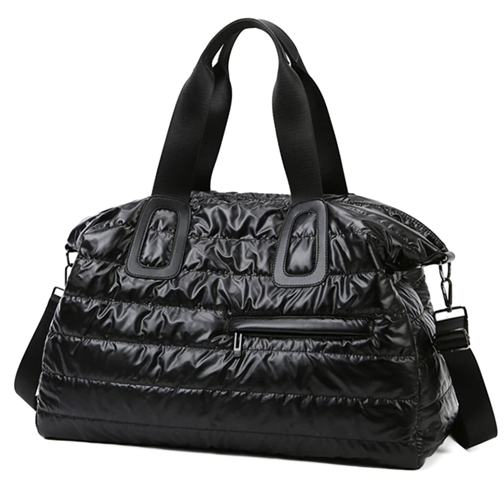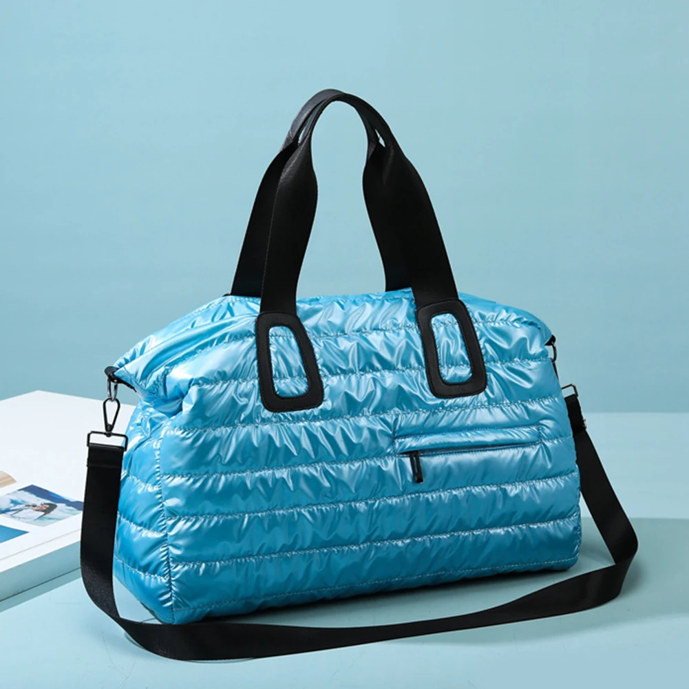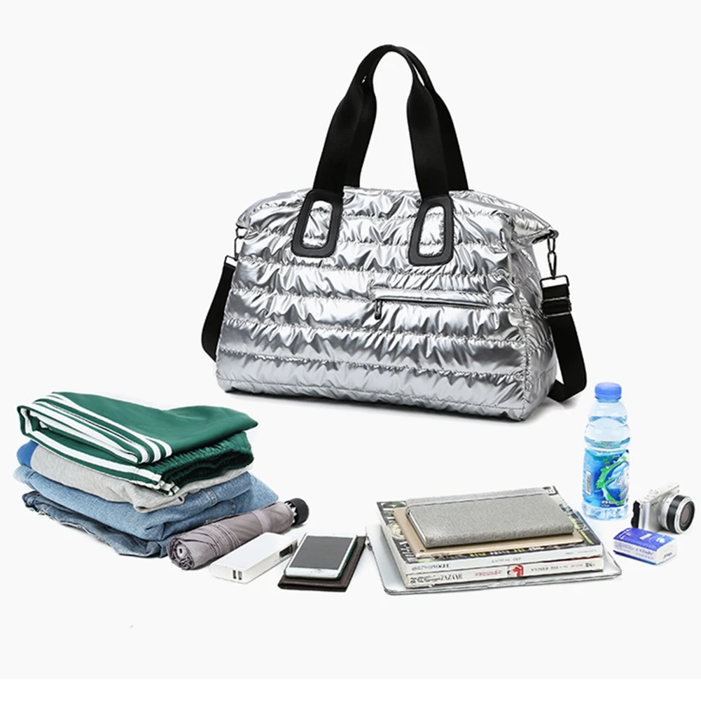 1.Convenient and Versatile: Our quilted gym bag is the perfect companion for your workout sessions or short trips. With its spacious design and multiple compartments, it offers ample storage space for all your essentials. Whether you need to pack your gym clothes, yoga mat, or swimwear, this bag ensures that you can easily organize and carry your belongings wherever you go.