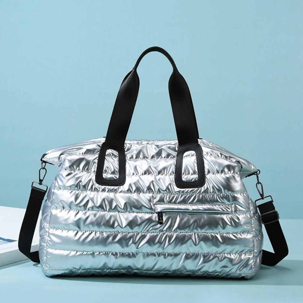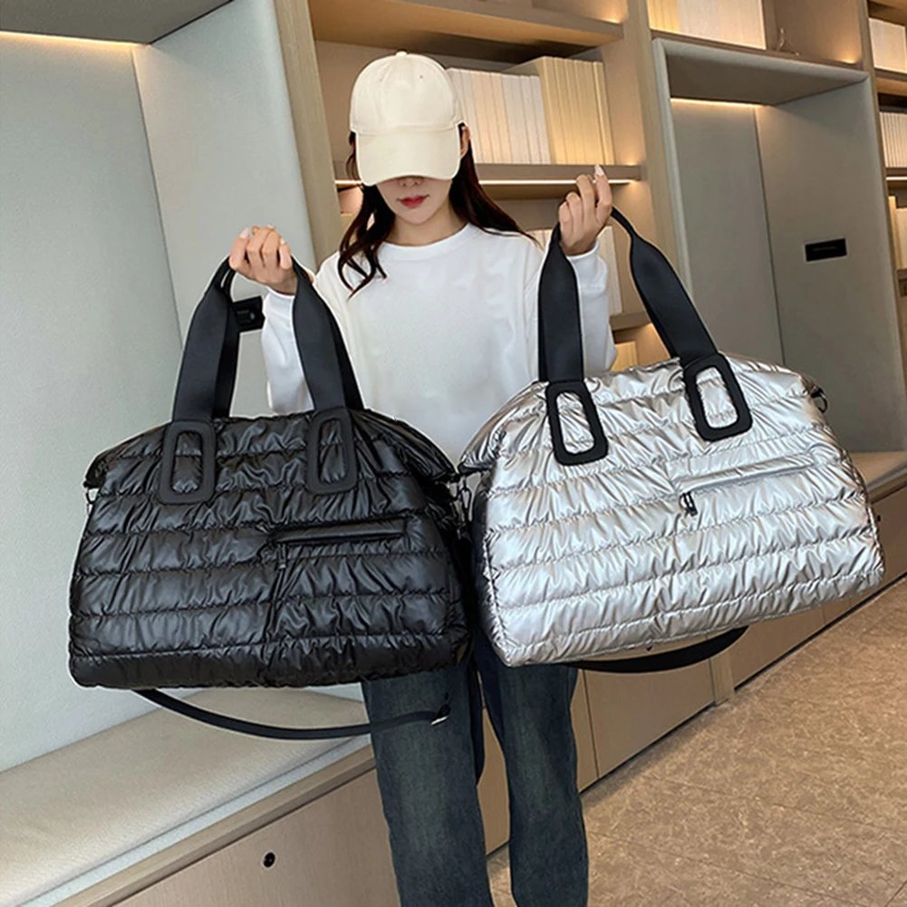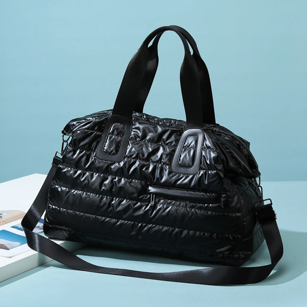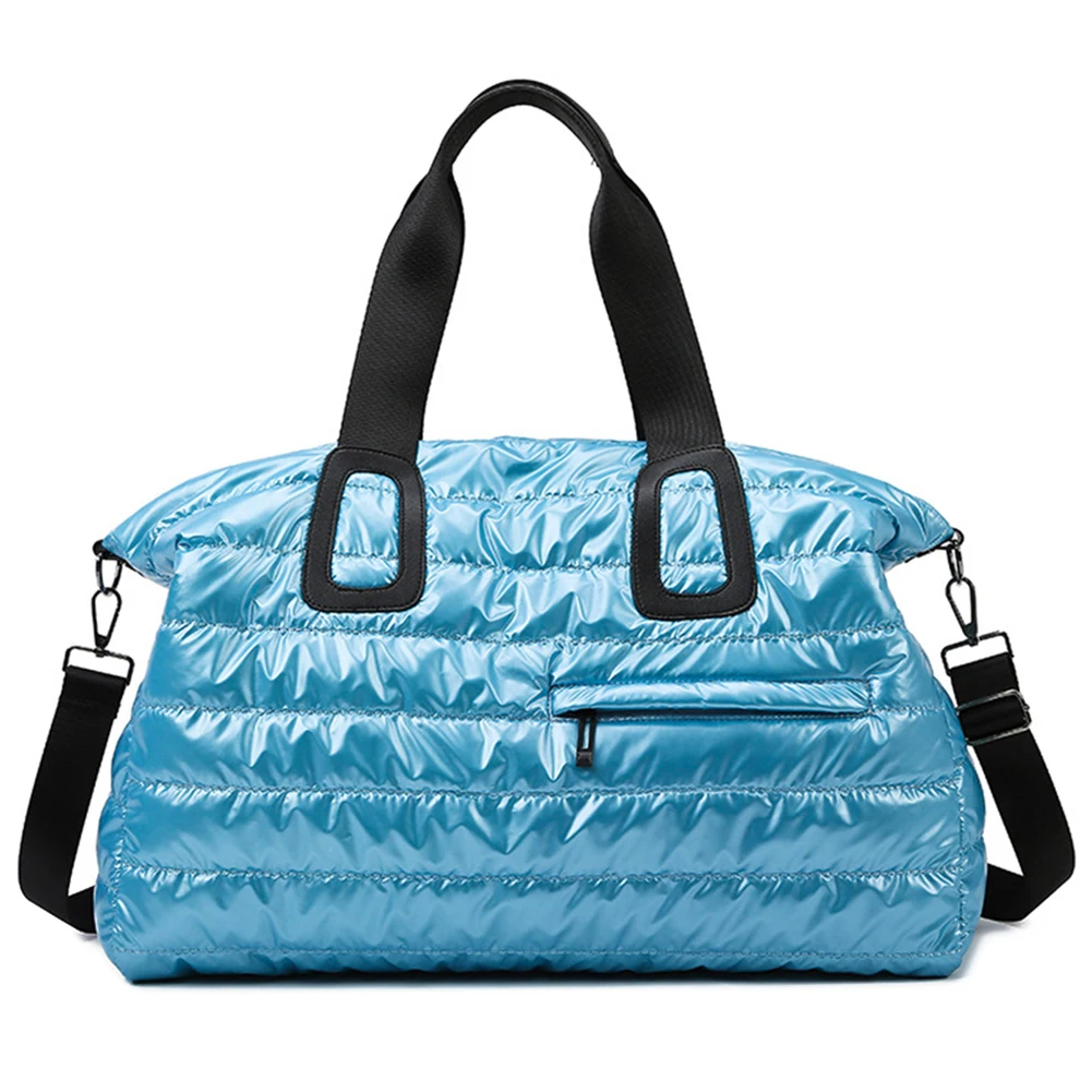 1.Convenient and Versatile: Our quilted gym bag is the perfect companion for your workout sessions or short trips. With its spacious design and multiple compartments, it offers ample storage space for all your essentials. Whether you need to pack your gym clothes, yoga mat, or swimwear, this bag ensures that you can easily organize and carry your belongings wherever you go.