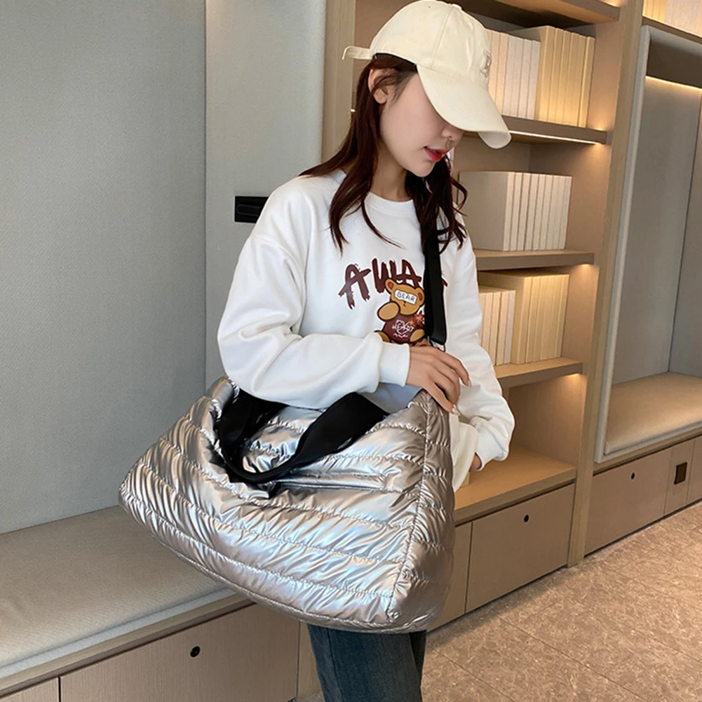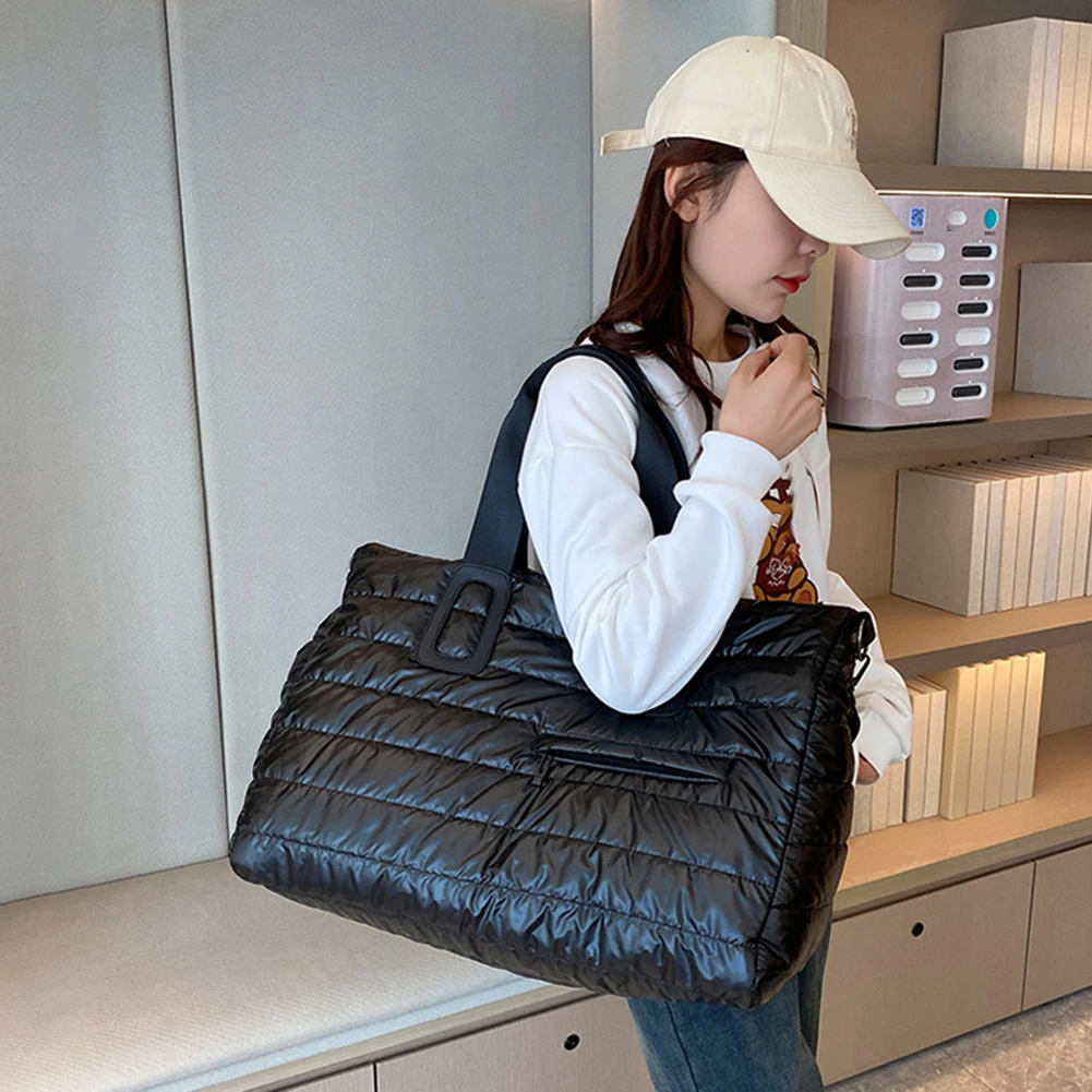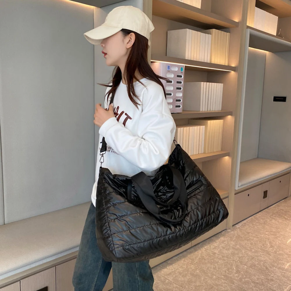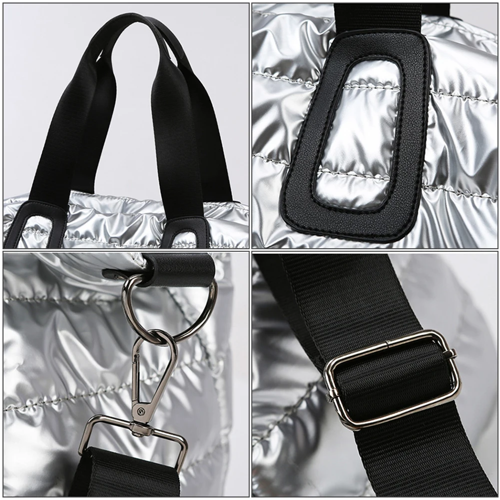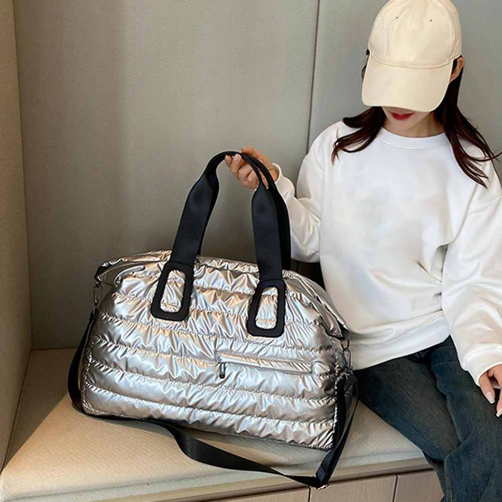 1.Convenient and Versatile: Our quilted gym bag is the perfect companion for your workout sessions or short trips. With its spacious design and multiple compartments, it offers ample storage space for all your essentials. Whether you need to pack your gym clothes, yoga mat, or swimwear, this bag ensures that you can easily organize and carry your belongings wherever you go.