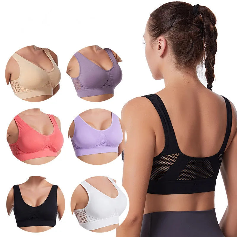 Women Sports Bra Crop Top Fitness Gym Runing Sportswear Wireless Hollow Mesh Yoga Bra Sports Underwear Push Up